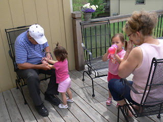 Yesterday PawPaw & Grandma dropped by for a visit. . .we went to some garage sales & of course, ice cream. . .Last night Daddy took the girls to Watkin's Mill where Aunt Susan & Uncle Paul & family are camping. . . they had a GREAT time! I sent the camera with Matt & he actually took some pictures. . .