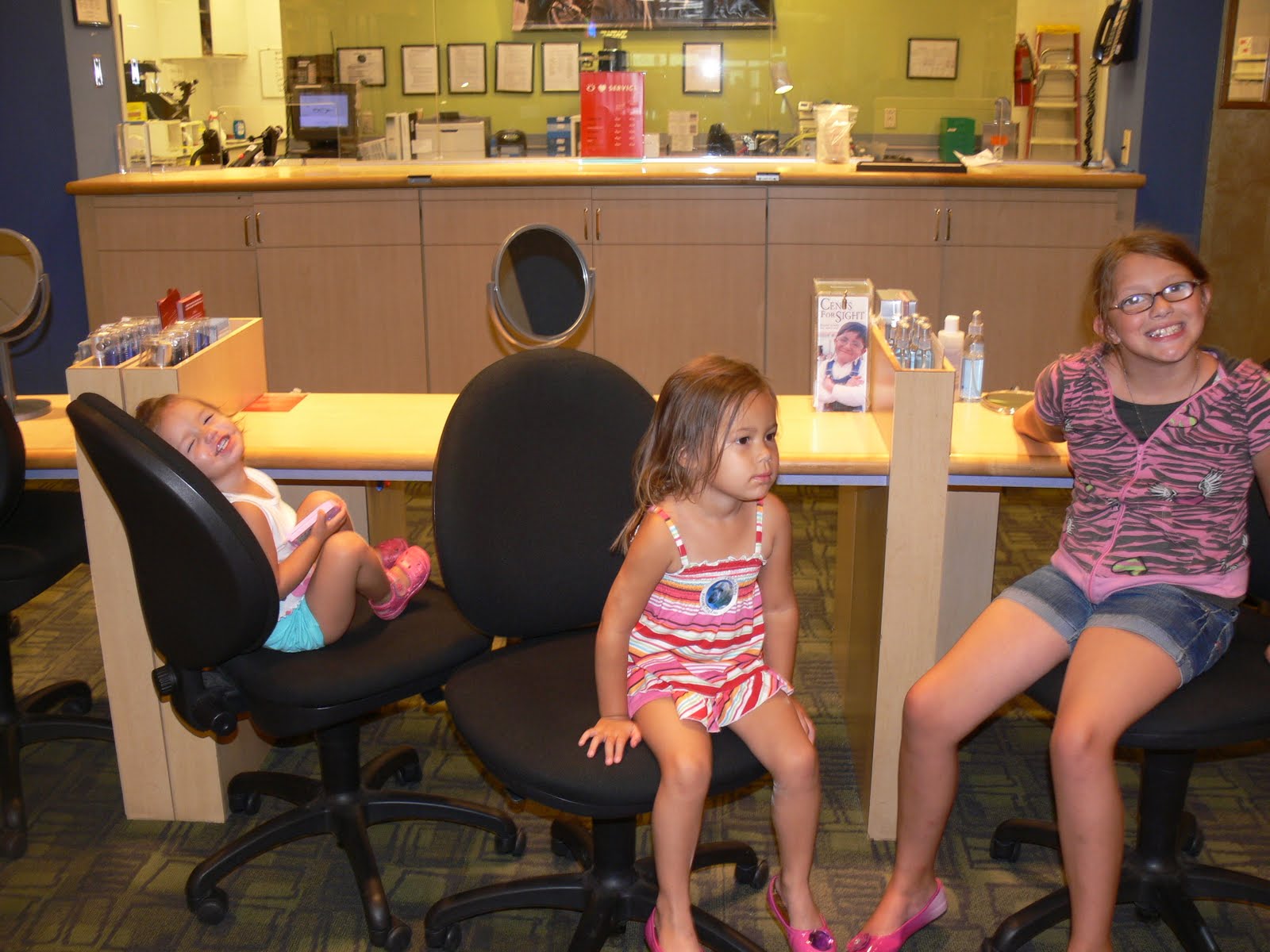 LoLo, Ali & Lily waiting for LoLo's new glasses. . .